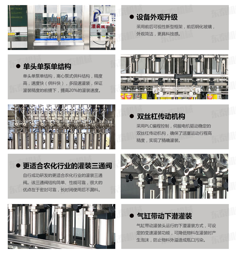 3、 该设备在设计上大大缩短了下料斗到灌装头的灌装距离