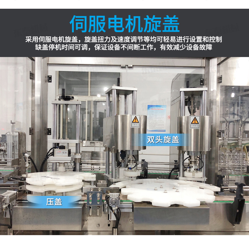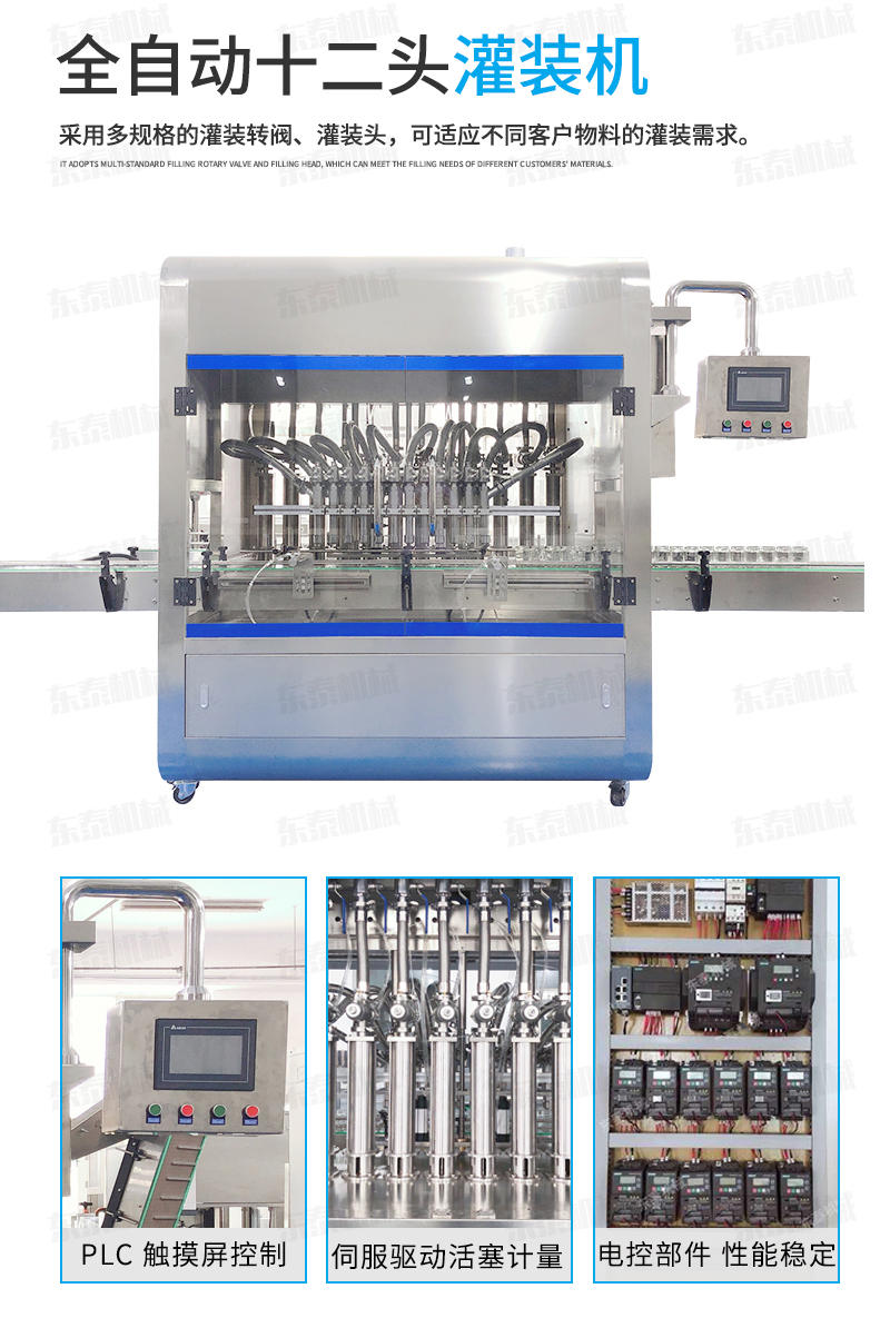 2、灌装机以进口PLC电脑控制、伺服驱动计量,全彩色触摸屏人机界面,一键完成计量切换确保容量之调整简易、快捷、准确。是任何形式的灌装机无法替代的;