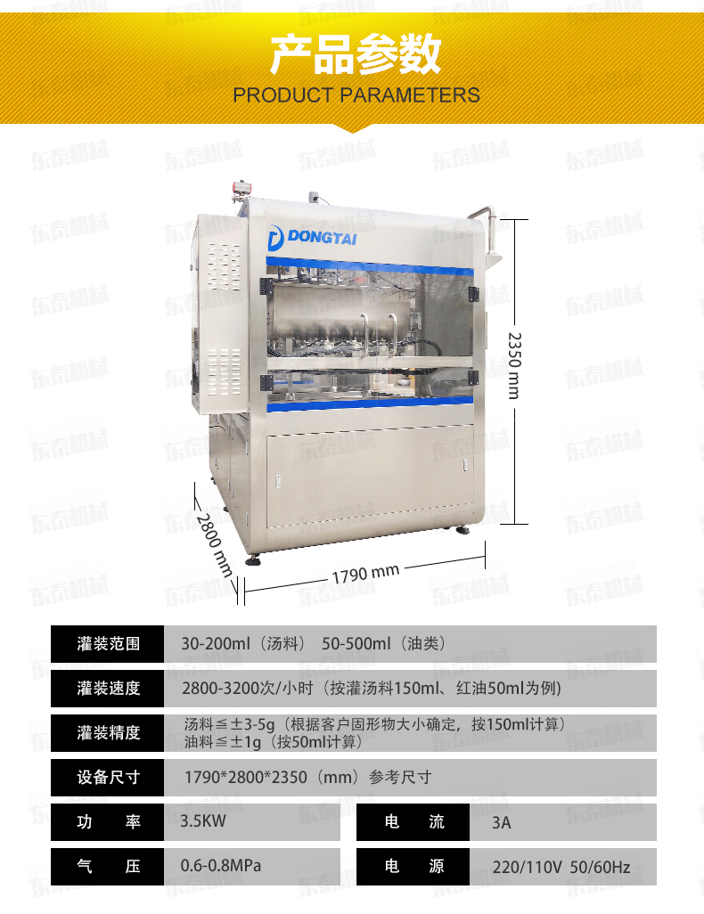 灌装范围:30-200ml(汤料) 50-500ml(油类)