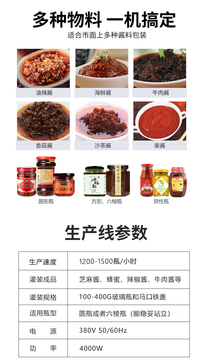 在现如今的销售市场中商品经济的迅速进步让大家日常生活有着大量新的进步,而酱汁灌装生产线在进步中逐步发展壮大,在不断地向前的进步中迎来火爆销售市场,为商品生产制造提供大量达到。现如今酱汁灌装生产线应用专业的智能化技术性,进而获得大量认可和进步,并在那样的销售市场中更快的针对各种酱汁商品,进而让自已在销售市场中更快的向前,进而在那样的销售市场中为你提供更高级的技术性,不断地重视本身能力和技术性生产制造,进而让自已有着更快的进步,并让自已有着独特的技术性和功能,重视本身能力的提升并顺应销售市场的进步提供大量升级换代,进而在那样的进步中占据大量的优势。
