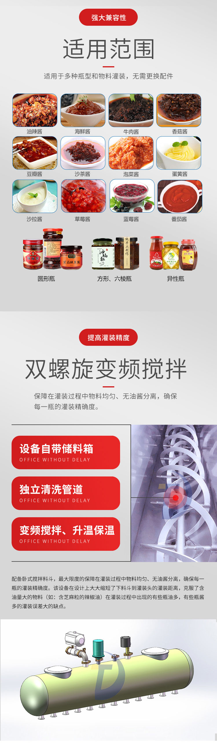 根据不一样的包装设计生产必须让产品实力得到大量提高。如今调味酱灌装机持续跟随人们的生活质量产生一个新的提高,进而让其产品品质拥有一个新的提高,也是让其产品品质和需求量不断提升。关注未来市场的进步,进而让其产品品质和功能产生一个新的提高,并持续跟随灌装机械领域的进步产生一个新的进步,让自己更强的考虑市場和顾客的必须,进而在持续努力的市場中产生一个新的转变,让你看到大量美好和转变,让客户见到大量希望,进而在不断前行的情况下为调味品产品产生适合的外包装。