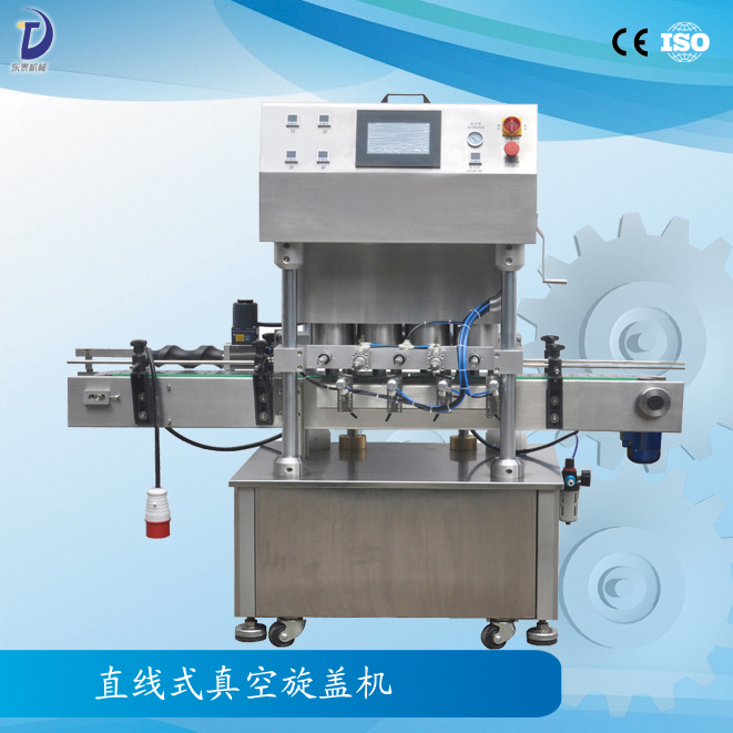 真空旋盖机一般所指是用于玻璃瓶马口铁旋开盖真空旋盖包装的设备。玻璃瓶口是带螺旋的,盖子材质通常是马口铁,带有和对应瓶口螺纹条数相等的扣,根据不同的瓶口直径标准规定为三、四、六扣的盖子,分别配套对应数量螺口玻璃瓶。