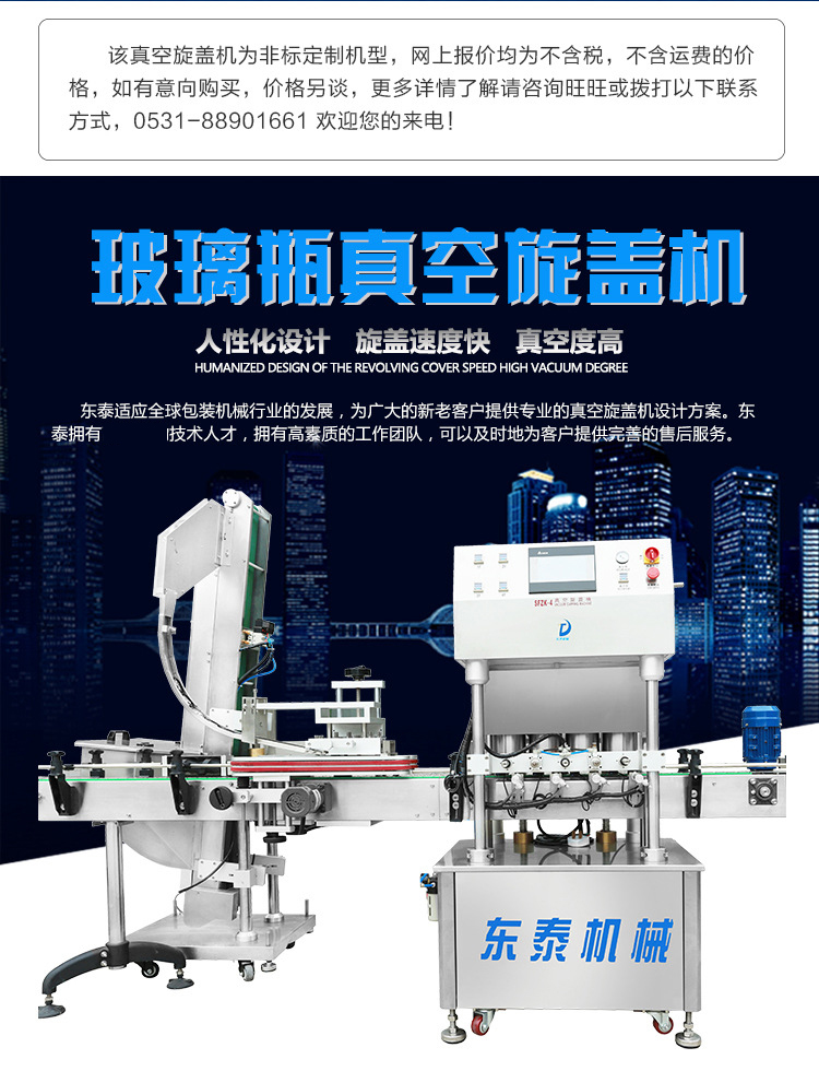 1、全自动玻璃瓶真空旋盖机集自动理盖、上盖、自动旋盖于一体,生产速度快,效率高,运行稳定可靠.
