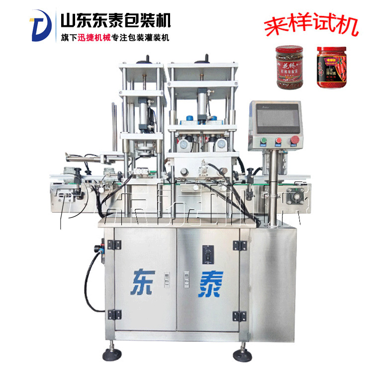 该机借鉴国外先进技术,结合国内客户需求研发而成。该机集自动进瓶、自动理盖上盖、自动抽真空旋盖、自动出瓶于一体,生产效率高,运行稳定可靠,是食品酱料、饮料、保健品等行业马口铁三(四)旋盖理想的抽真空旋盖设备。