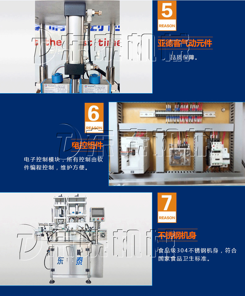 6.旋盖机构高度可快速调节,可适用相同口径、不同高度的瓶子旋盖;更换部分零件即可实现不同瓶径、不同口径的旋盖,更换快捷方便。