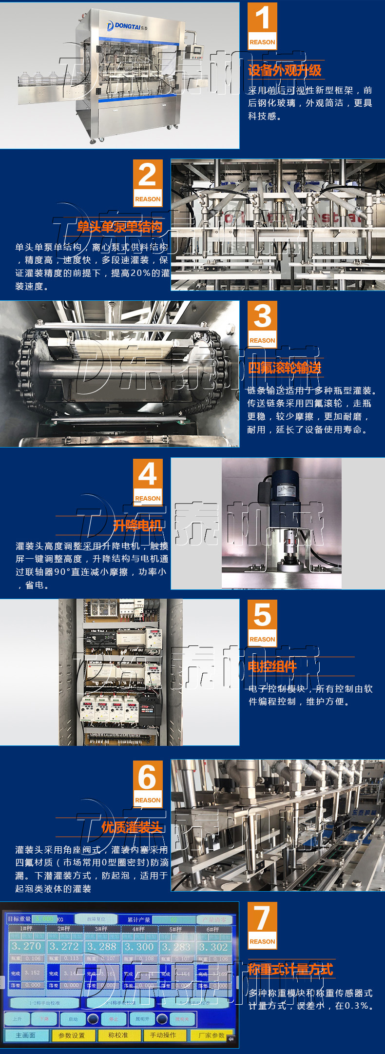8、每个灌装头均有称重和反馈系统,可对每个头的灌装量进行设置和微量调整。