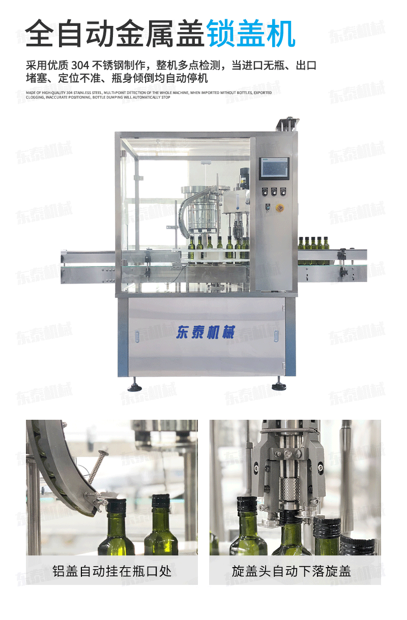 2.菜籽油自动灌装机生产线整机采用SUS304不锈钢框架,与物料接触部位均采用优质316L不锈钢材质好。外包不锈钢和钢化玻璃门罩将机体密封,连接部位全部采用快接接口。