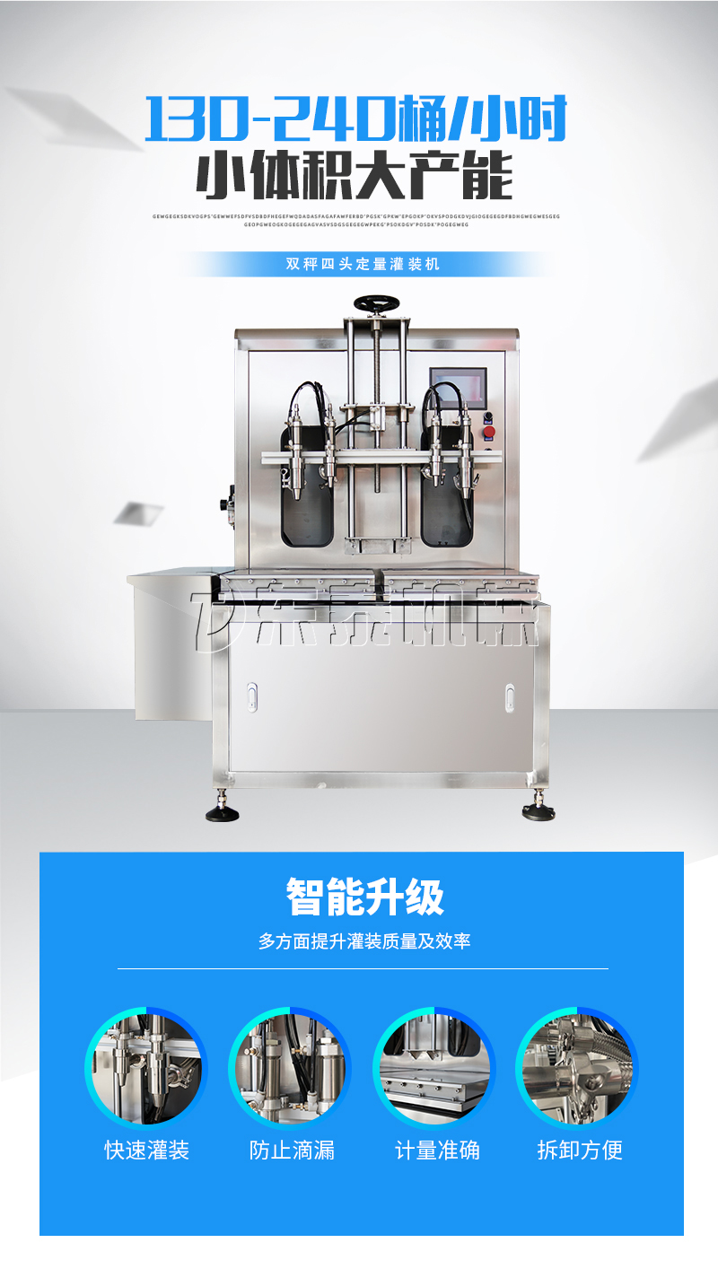 5.该设备配备四头(大小两组)双泵,,净重/毛重、自动/手动功能一键切换,进一步满足客户精度,速度,低投资需求。